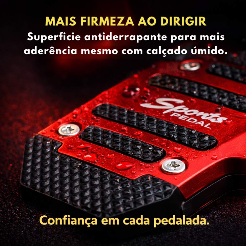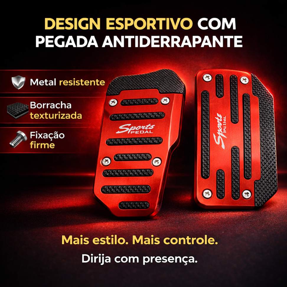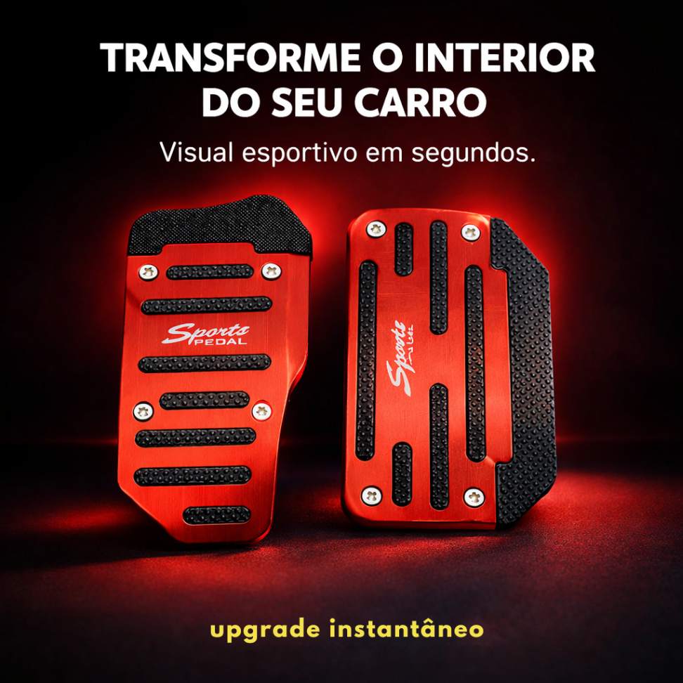 Inspirado no estilo automotivo de alta performance, o conjunto proporciona um visual mais agressivo e esportivo para os pedais. O acabamento metálico com detalhes antiderrapantes cria um contraste moderno e elegante, valorizando o interior do veículo.