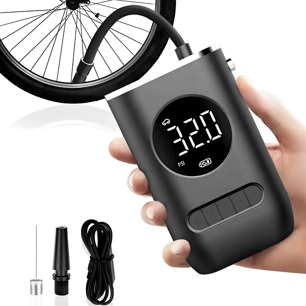 Compacta, leve e extremamente potente, essa mini bomba foi desenvolvida para calibrar pneus de carros, bicicletas, motos, bolas e outros infláveis com rapidez e precisão. Seu display digital inteligente permite visualizar a pressão em tempo real, garantindo a calibragem exata, sem erros e sem esforço. Basta conectar, ajustar a pressão desejada e pronto — ela faz o resto por você. 🔥